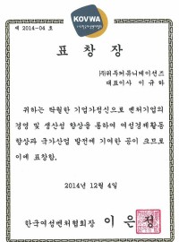 한국여성벤처협회 표창장