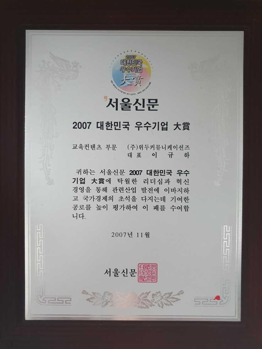 2007 대한민국 우수기업 대상 페이지 정보 작성자 WeDu 댓글 0건 조회 5,783회 작성일 19-05-30 19:31 본문 2007-11-00 대상 교육 콘텐츠 부문 2007 대한민국 우수기업 대상 서울신문 List Previous제 8회 디지털 이노베이션 대상 19.05.30